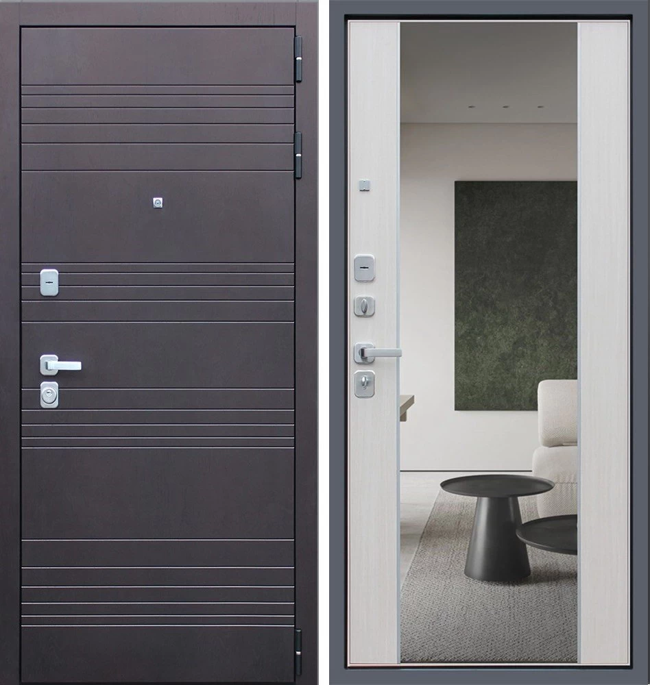 Надежная входная Дверь Дуэт с зеркалом премиум класса по цене 44 950 руб. Большая толщина стали защитит от проникновения в ваш дом, квартиру или коттедж. Используется очень качественная фурнитура: замки, цилиндры, ручки, защелки. Покрытие и отделка двери изготовлено под внимательным контролем производителя. Дверь имеет долгий срок службы и гарантию.