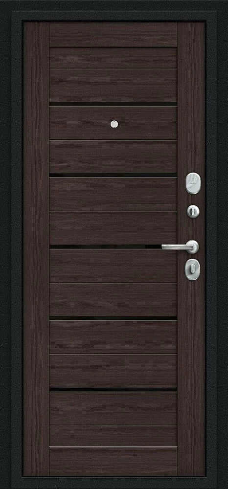 Надежная входная Браво Техно Kale Букле черное/Wenge Veralinga премиум класса по цене 31 950 руб. Большая толщина стали защитит от проникновения в ваш дом, квартиру или коттедж. Используется очень качественная фурнитура: замки, цилиндры, ручки, защелки. Покрытие и отделка двери изготовлено под внимательным контролем производителя. Дверь имеет долгий срок службы и гарантию.