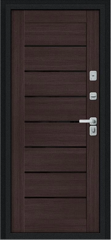 Дизайнерская входная Дверь Браво Thermo Техно Д2/BChrome Букле черное/Wenge Melinga класса Люкс с несколькими листами стали, звукоизоляцией и теплоизоляцией. Утепленный короб и полотно защитят от сквозняков и шумов. Модель не только надежная, комфортная, защищенная и высочайшего качества, но и очень красивая! Будет отлично сочетаться с интерьером дома, квартиры или офиса. Сейчас действует выгодное предложение по цене: 55 450 руб.